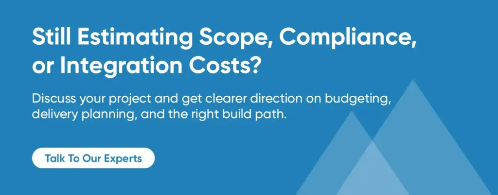 - Money movement scope – Will you transfer funds, issue cards, or just display account data? The more movement and PCI scope (card payments) you include, the higher the cost.